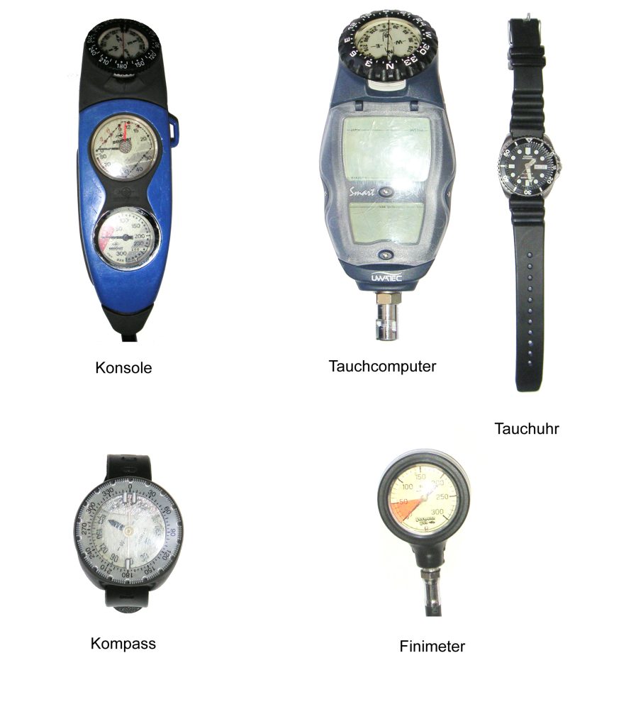 Der Kompass dient zur Navigation unter Wasser. Er wird hier der Vollständigkeit halber aufgeführt. Der Einsatz und die Verwendung des Kompass zur Navigation wird in weiterführenden Tauchkursen behandelt.