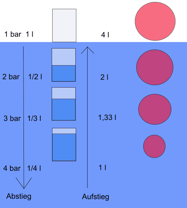 Aus diesem Gesetz leiten sich die drei wichtigsten Tauchgrundregeln ab: