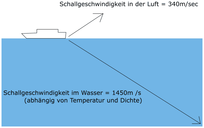 Schallwellen bewegen sich je nach ihrem Trägermedium unterschiedlich schnell. Im Wasser sind Schallwellen schneller als in der Luft.