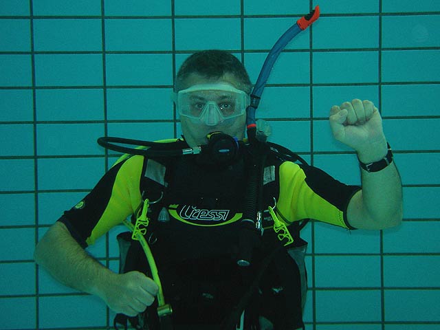 Die beiden Zeigefinger aneinander gehalten bedeutet, dass die Tauchpartner zusammen bleiben sollen.